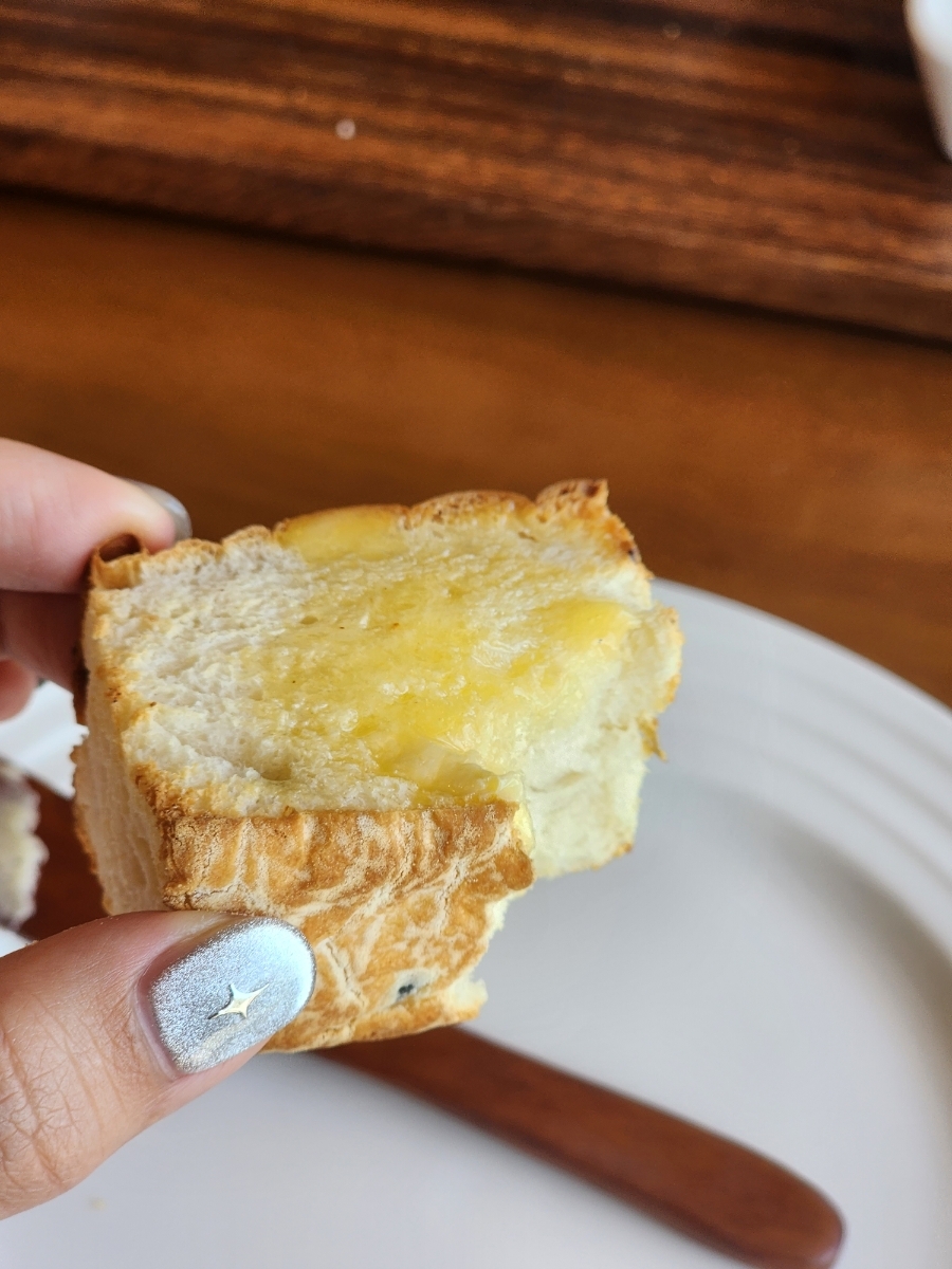 요 귀여운 버터나이프로 허니버터를 발라먹으면 됩니당