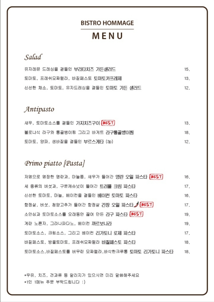 대신에 1인당 1파스타는 시켜줘야해욧