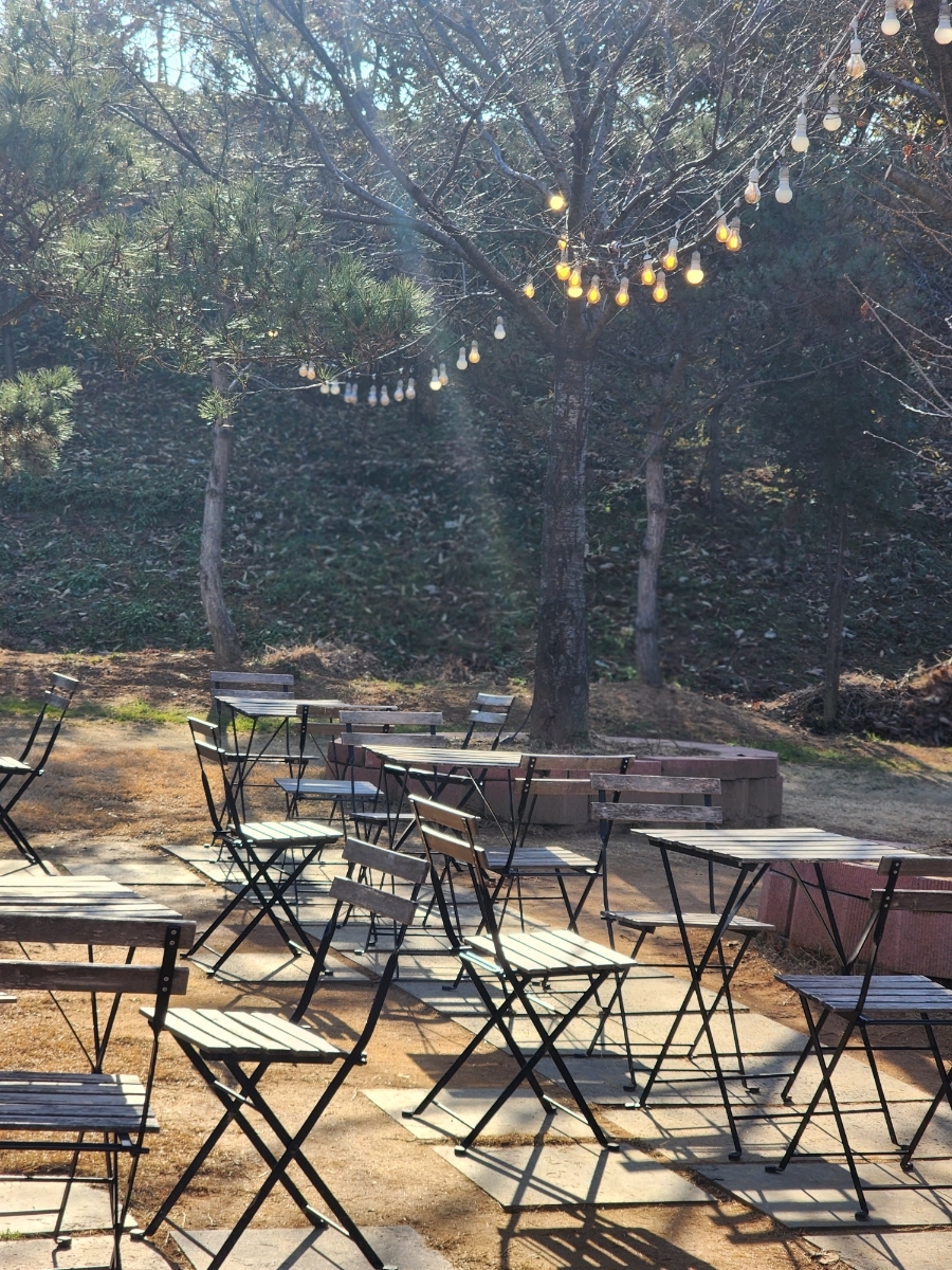 들어서는 산책로 정원에 야외테이블도 많았어요!