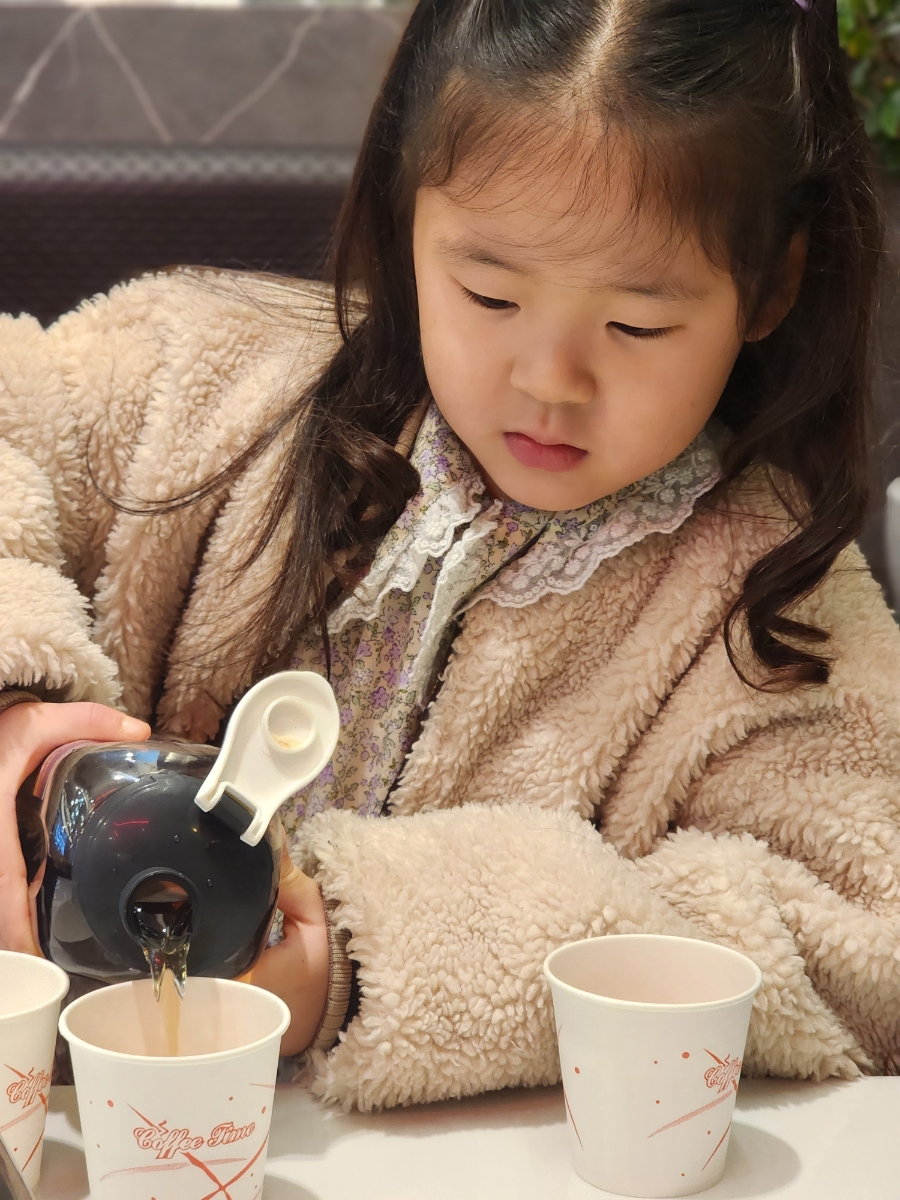 하더니 식당가면 물 따르기 담당이 되었어요